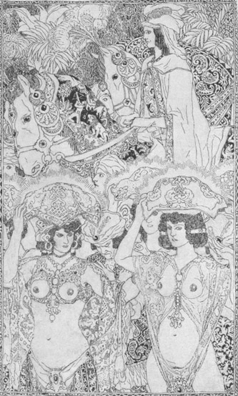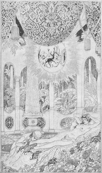 Eines Tags, als er in der Stadt spazieren ging, hörte Alaeddin mit lauter Stimme einen Befehl des Sultans ausrufen, daß jedermann seinen Laden und seine Haustüre schließen und sich ins Innere seiner Wohnung zurückziehen solle, bis die Prinzessin Bedrulbudur, das heißt »Mond der Monde«, die Tochter des Sultans, die baden wollte, vorübergegangen und wieder zurückgekehrt sein würde.