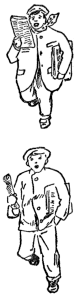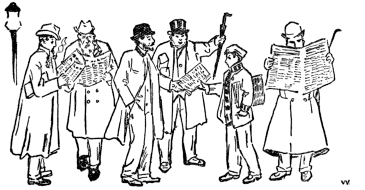 [22]It was like the two men that Dickens—I believe it was Dickens—tells about: Somebody gives A a concertina, but he can't play on it; winter coming on and no overcoat; he can't wear the concertina any more than he can tootle it. A few blocks away is a fellow, Mr. B. He can play a concertina something grand, but he hasn't got one and his fingers itch. He spends all his ready money on a brand-new overcoat, and just then his aunt sends him another one. He thinks he'll just swap one of them overcoats for a concertina. So he advertises in an exchange column. About the same time, A advertises that he'll trade one [23] house-broken concertina for a nice overcoat. But does either A or B ever see B's or A's advertisements? Not on your beautiful daguerreotype.