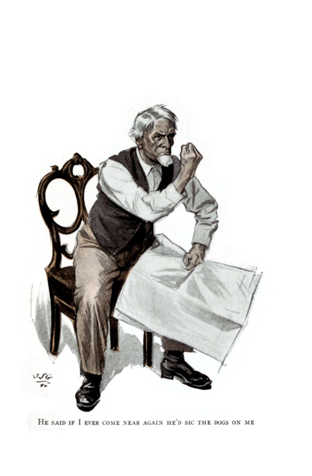 Then there was the night when I proposed for your hand and you sent me to your pa, and he said if I ever come near again he'd sic the dogs on me. I spent that night at a safe [18] distance from the dogs, leaning on a fence, and not noticing it was barb wire till I looked at my clothes and my hide next day. I watched your windows till the light went out and all my hope with it—and on after that till, as the poet says, till daylight doth appear.
