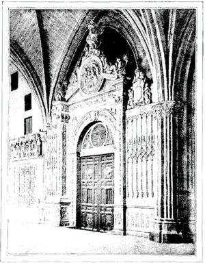 Porte de l'hôpital de Santa Cruz. (Photographie Lacoste, à Madrid.) 609