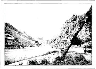 L'oued Hadedj sort d'une étroite crevasse de la montagne. (D'après une photographie.) 570