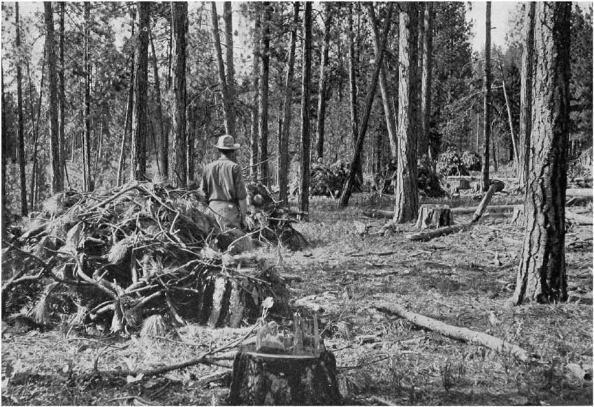 Next to the protection of his District from fire, the most important duty of the Ranger has to do with the sale of timber and the marking of the individual trees which are to be cut. The reproduction of the forest depends directly on what trees are kept for seed, or on how the existing young growth is protected and preserved in felling and swamping the trees which have been marked for cutting, and in skidding the logs. The disposal of the slash must be looked after, for it has much to do with forest reproduction, and with promoting safety from fire. Then, the scaling of the logs determines the amount of the payment the Government receives for its timber, and there are often regulations governing the transportation of the scaled logs whose enforcement is of great consequence to the future forest.