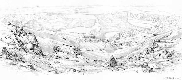 Sir William Hamilton's Campi Phlegræi relates mainly to Vesuvius and the surrounding neighbourhood; but one of the letters "addressed to the Secretary of the Royal Society on October 17th, 1769," describes an ascent of Etna. Hamilton ascended on June 24th with the Canon Recupero and other companions; the few observations of any value which he made have been alluded to elsewhere under the head of the special subjects to which they refer. The illustrations of the Campi Phlegræi, specially the original water-colours which are contained in one of the British Museum copies, are magnificent, and convey a better idea of volcanic phenomena than any amount of simple reading. From them we can well realise the opening of a long rift extending down the sides of a mountain during its eruption, and the formation of subsidiary craters along the line of fire thus opened. Various volcanic products are also admirably painted. In the picture of Etna, however, which was drawn by Antonio Fabris, the artist has scarcely been more successful than his predecessors, and the slope of the sides of the mountain has been greatly exaggerated.
