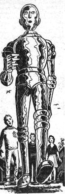 The blue humanoid realized this and was amused. A policeman who approached him to take him to jail as a matter of routine suddenly found himself ill and abruptly hurried to the station. The robot allowed children to follow him, though all eventually grew discouraged because of his long strides.
