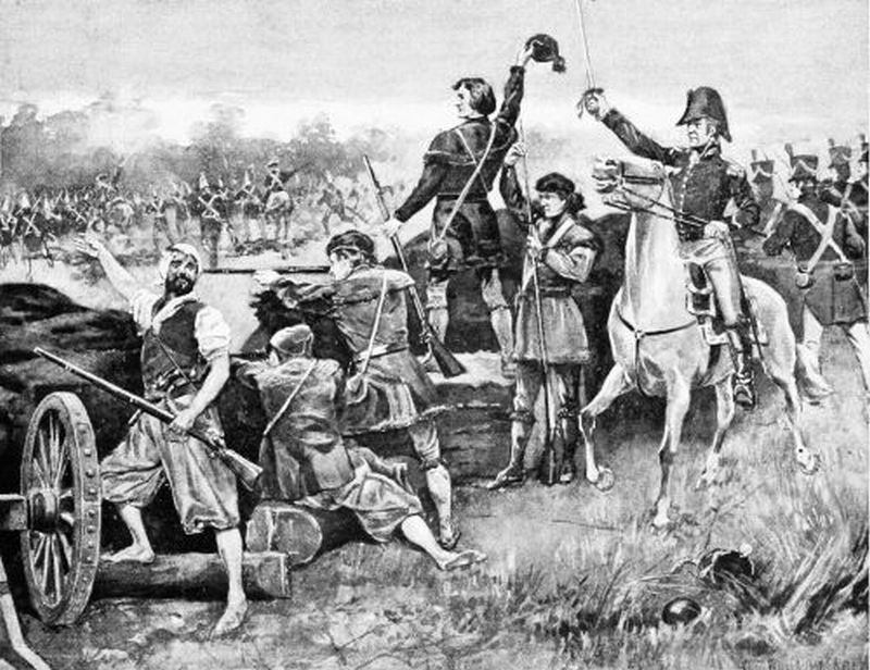 Mad with shame and rage, Pakenham rode quickly among them to rally and lead them forward, and the officers sprang around him, smiting the fugitives with their swords, and cheering on the men who stood. For a moment the troops halted, and again came forward to the charge; but again they were met by a hail of bullets from the backwoods rifles. One shot struck Pakenham himself. He reeled and fell from the saddle, and was carried off the field. The second in command was wounded, and then all attempts at further advance were abandoned, and the British troops ran back to their lines. Another assault had meanwhile been made by a column close to the river, the charging soldiers rushing right up to the top of the breastworks: but they were all killed or driven back. A body of troops had also been sent across the river, where they routed a small detachment of Kentucky militia; but they were, of course, recalled when the main assault failed.