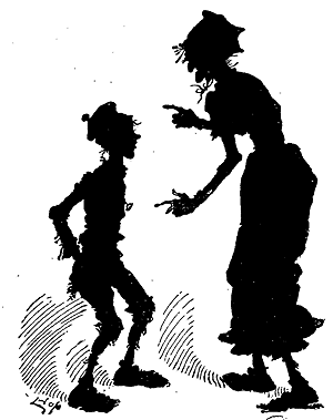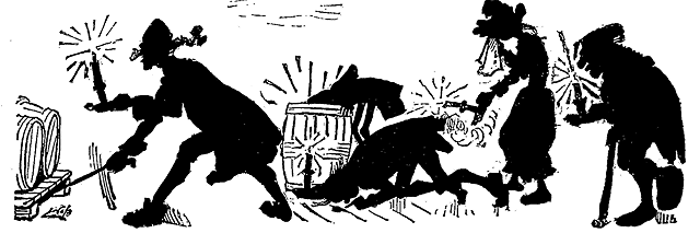 XXIV Puis dans un panier il plonge Moumouth, qui, tout effaré, Croit être le jouet d'un songe De son esprit égaré. |