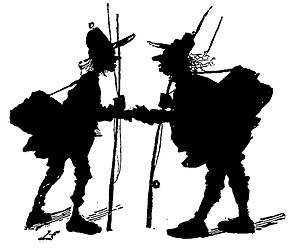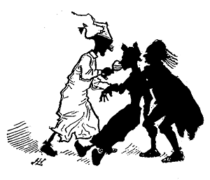 XXXIV Pensez si nos pauvres gens Firent piteuse figure. Retrouvant de leurs quinze ans L'ardeur et la vive allure, Ils poursuivent, furieux, L'animal malencontreux, Qui, plus qu'eux rapide et leste, Part sans demander son reste. |