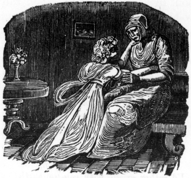 Page 266: As the mother said this, she lifted her little boy from his bed, and, seating him on her lap, first of all washed his face in a basin{original had bason} of cool, clean water.