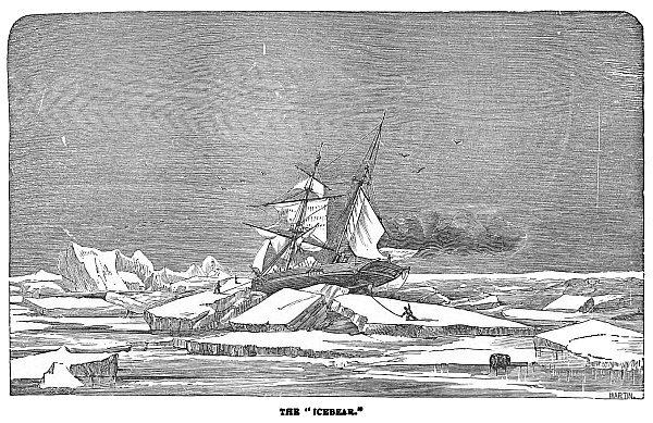 “Here it is again, mother, a vast and lonely trackless waste of snow; great glaciers, against whose sides mountain waves for ever dash and foam; icebergs whose pinnacled heads taper upwards into a sky of cloudless blue. Fields of ice on which white bears roam; dark, inky seas where the walrus plays and tumbles, and through which the solitude-loving narwhal pursues his finny prey; and crystalline caves where sea-bears roar. But the scene is changed: it is night—the long, long, Polar night. Oh, how bright and beautiful the Aurora, with its ever-changing tints of crimson, green, and blue; and the stars, how near they seem; and the silence, how deep, how awful! But see, a storm is coming across the pack, and clouds are banking up and hiding the glorious Aurora; now it is on us, and higher than the stars rise the clouds of whirling, drifting snow. Hark! how the wind howls! There is danger on its wings; there is—”