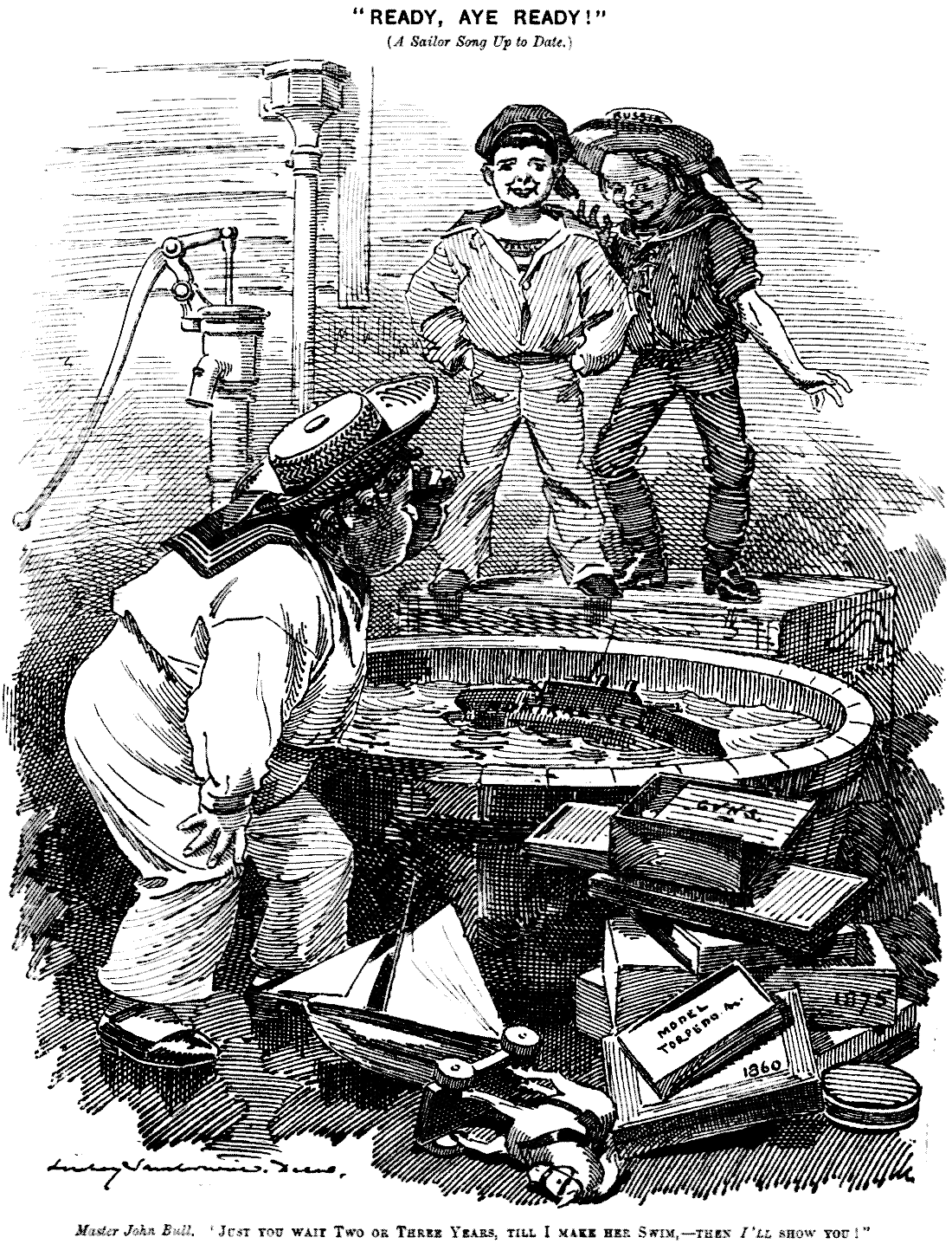 ["The alleged unemployed who assemble on Tower Hill are becoming worse even than mountebanks. One of the speakers declared yesterday that 'The secret societies of London are going to-night to wait on Mr. Gladstone, to ask what he is going to do. If the Prime Minister does not give a definite reply, they will take him on their backs and throw him into the Thames.'"—The Daily Telegraph, Sept. 1.]