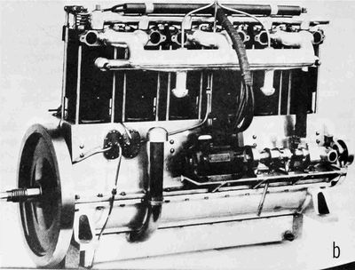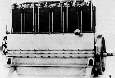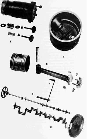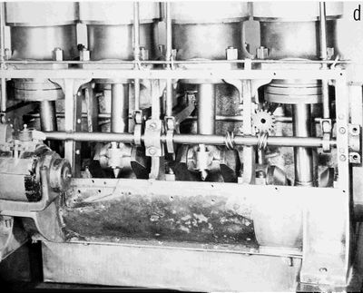 In one matter it would seem that they were quite fortunate. The records are not complete, but with one exception there is no indication of any chronic or even occasional crankshaft failure. This would seem to show that it apparently never happened that any of their designs came out such that the frequency of a vibrating force of any magnitude occurred at the natural frequency of the shaft. Much later, when this type of vibration became understood, it was found virtually impossible, with power outputs of any magnitude, to design an undampened shaft, within the space and weight limitations existing in an ordinary engine, strong enough to withstand the stress generated when the frequency of the imposed vibration approximated the natural frequency of the shaft. The vibratory forces were mostly relatively small in their engines, so that forced vibration probably was not encountered, and the operating speed range of the engines was so limited that the natural frequency always fell outside this range.