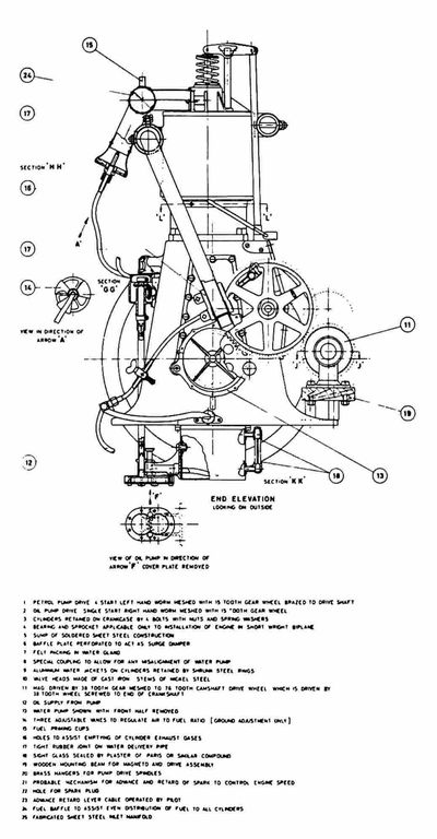 (p. 6) The two sets of drawings, that is, the one of the Science Museum and that made in Dayton for the Smithsonian Institution, cannot be reconciled in the matter of details. Hardly any single dimension is exactly the same and essentially every part differs in some respect. Many of the forms of construction differ and even the firing order of the two engines is not the same, so that in effect the drawings show two different engines.