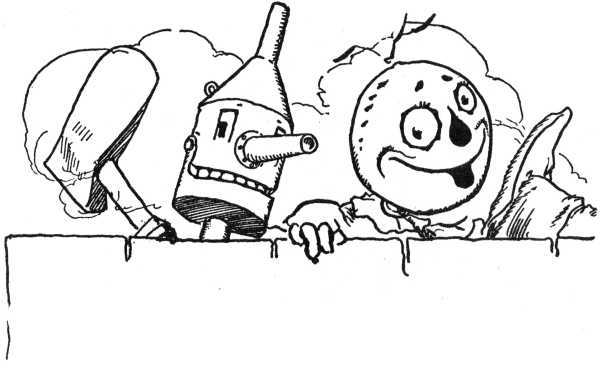 The Skeezers quickly recognized the three Adepts at Magic, whom they had learned to respect before their wicked Queen betrayed them, and welcomed them as friends. All the inhabitants of the village had been greatly frightened by their imprisonment under water, but now realized that an attempt was to be made to rescue them.