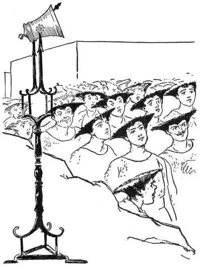 When evening came Ozma ordered a great feast prepared, to which every Skeezer was invited. The village was beautifully decorated and brilliantly 275 lighted and there was music and dancing until a late hour to celebrate the liberation of the people. For the Skeezers had been freed, not only from the water of the lake but from the cruelty of their former Queen.