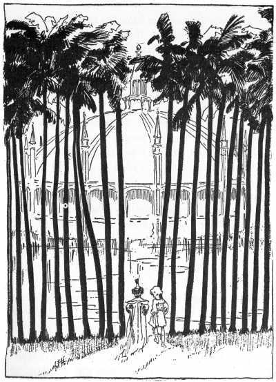 "Another part of this machinery," explained the white-haired Adept, "is used to extend the bridge from the island to the mainland. The steel bridge is in 260 a room much like that in which the boats are kept, and at Coo-ee-oh's command it would reach out, joint by joint, until its far end touched the shore of the lake. The same magic command would make the bridge return to its former position. Of course the bridge could not be used unless the island was on the surface of the water."