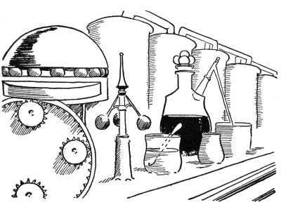A flight of marble stairs led from one of Coo-ee-oh's private rooms down to the basement, but when the party arrived all were puzzled by what they saw. In the center of a broad, low room, stood a mass of great cog-wheels, chains and pulleys, all interlocked and 258 seeming to form a huge machine; but there was no engine or other motive power to make the wheels turn.