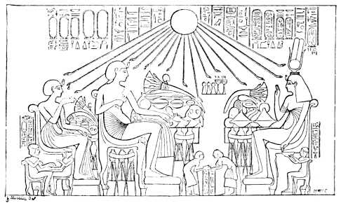 Fig. 2.—The adoration of the solar disk by Amenophis IV.; from Prisse.