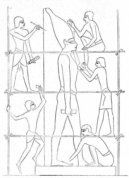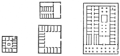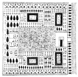 No scale is given in any of these plans, so that we are unable to determine either the extent of ground occupied by the buildings and their annexes, or their absolute height. But spaces and heights seem to have been kept in just proportion. The Egyptian draughtsman was prepared for the execution of such a task by education and the traditions of his art, and his eye seems to have been trustworthy.