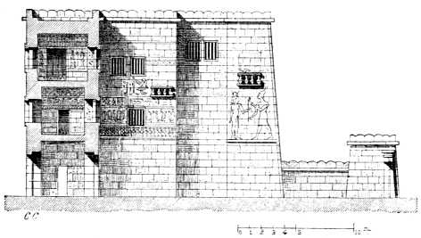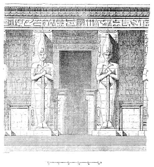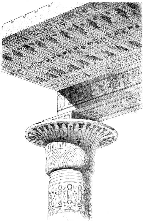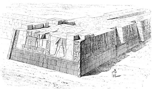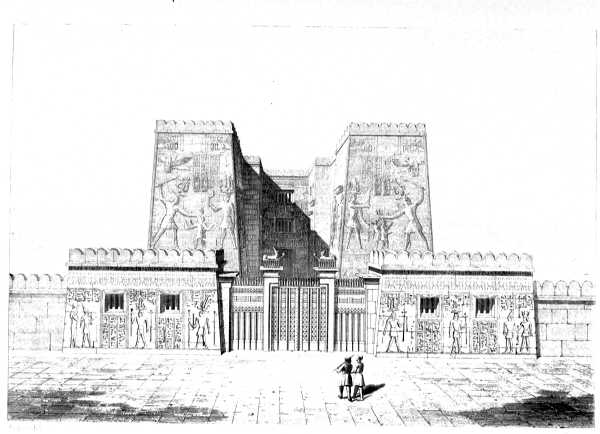 Impelled by this idea, the earlier visitors to Egypt saw palaces everywhere. They called everything which was imposing in size a palace, except the pyramids and the subterranean excavations. The authors of the Description de l'Égypte thought that Karnak and Luxor, Medinet-Abou, and Gournah, were royal dwellings. Such titles as the Palace of Menephtah, applied to the temple of Seti, at Gournah, have been handed down to our day, and are to be found in works of quite recent date, such as Fergusson's History of Architecture.[1]