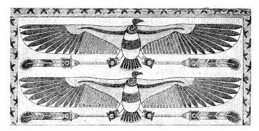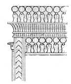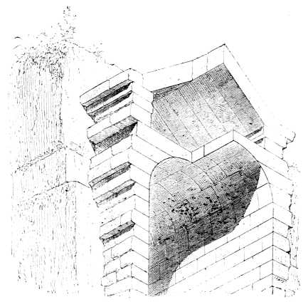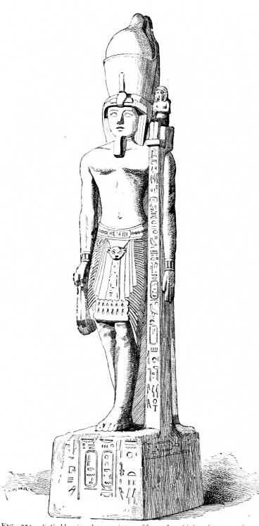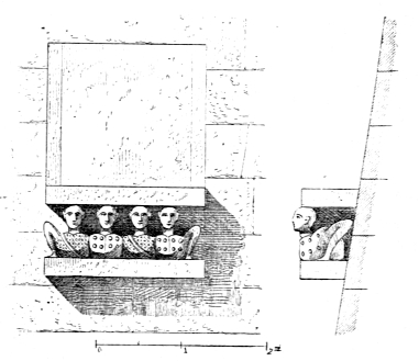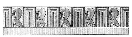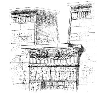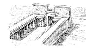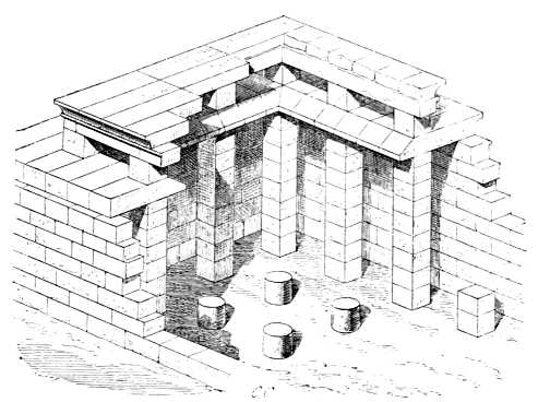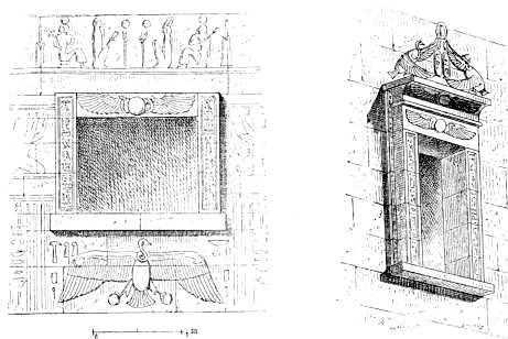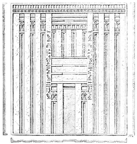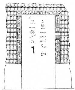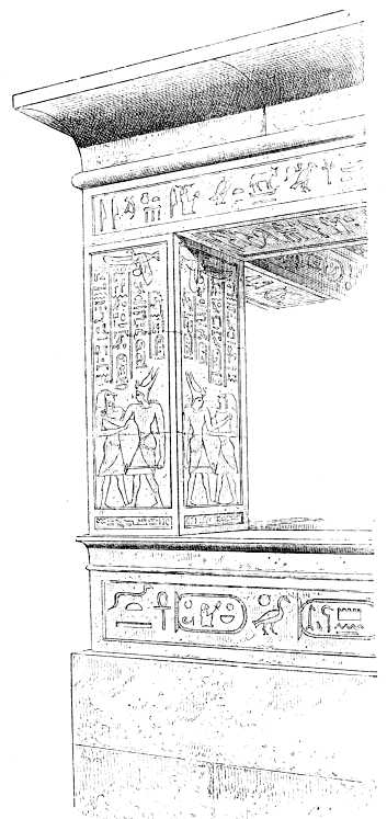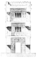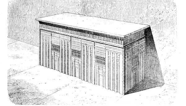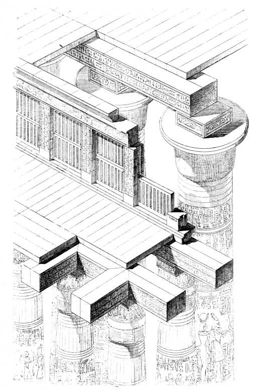 It is not always easy, however, to trace the actual conformation and arrangement of those buildings through the conventionalities employed by the artists, and we must therefore begin by attempting to understand the ideas with which the Egyptians made the representations in question. Their idea was to show all at a single glance; to combine in one view matters which could only be seen in reality from many successive points, such as all the façades of a building, with its external aspect and internal arrangements. This notion may be compared to that which recommends itself to a young child when, in drawing a profile,2 he insists upon giving it two ears, because when he looks at a front face he sees two ears standing out beyond either cheek.