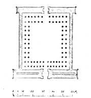In these days when we wish to represent an architectural building exhaustively, we do it in geometrical fashion, giving plans, elevations, and sections. To get a plan we make a horizontal section at any determined height, which gives us the thickness of the walls and the area of the spaces which they inclose. An elevation shows us one of the faces of the building in all its details, while the transverse or longitudinal section allows us to lay the whole of the structural arrangements open to the spectator. Plan, elevation, and section, are three different things by the comparison of which a just idea of the whole building and of the connection of its various parts may be formed.