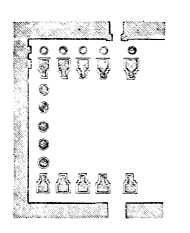to enter, is in one of the narrow sides. It is inclosed by the two