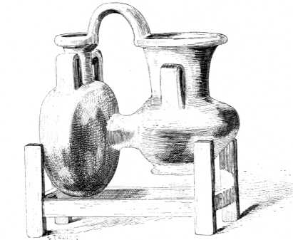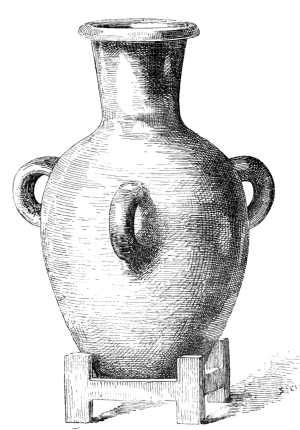 The process which we have just described is the dominant process in Egyptian figuration. Here and there, as in Fig. 1, it is combined with the vertical section. This combination is conspicuous in the plan found at Tell-el-Amarna, from which we have restored the larger of the two villas which we illustrate farther on. In this plan, as in the case of the Theban house figured on page 3, the artist has been careful to show that there was no want of provision in the house; the wall of the store-room is omitted, and the interior, with its rows of amphoræ, is thrown open to our inspection.