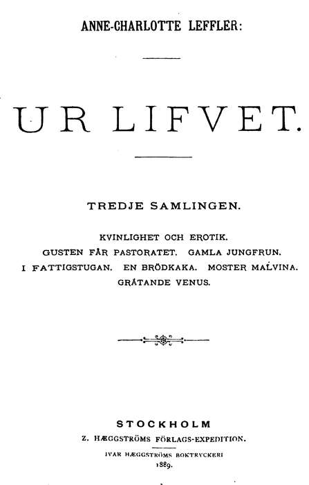 Källa: Anne-Charlotte Leffler: Ur Lifvet. Tredje Samlingen., Z. Hæggströms Förlags-Expedition, Stockholm 1889, pp. 1-48.