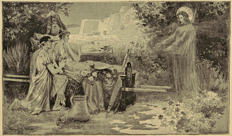 Antea was calmer, less frightened than usual at the approach of midday,[Pg 58] and with it the terror of dreadful visions, which had drawn the life out of her. What the procurator had said touching the young Nazarene, had attracted her mind and turned attention from her own misery. For her there was in this something wonderful which she could hardly understand. The world of that time had seen many persons die as calmly as a funeral pile quenches when the fuel in it is consumed. But that was a calmness coming from bravery, or from a philosophic agreement with the implacable necessity of exchanging light for darkness, real life for an existence misty, vanishing, and indefinite. No one up to that time had blessed death; no one had died with unshaken certainty that only after the funeral pyre or the grave would real life begin,—life as[Pg 59] mighty and endless as only a being all-powerful and eternal can give.