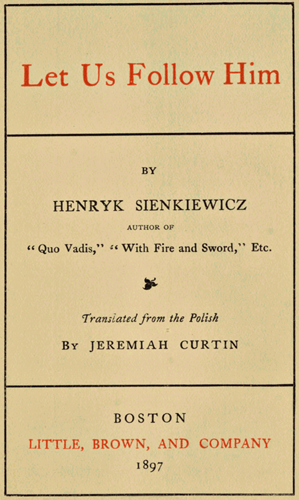Although the story "Let Us Follow Him" is included in the new volume by Sienkiewicz entitled "Hania," just issued in uniform style with Mr. Curtin's translations of the author's other works, its publication in a separate volume has been deemed advisable for the reason that this story gave to its author the idea of writing "Quo Vadis," which has been the literary sensation of the past twelve months.