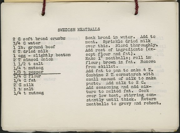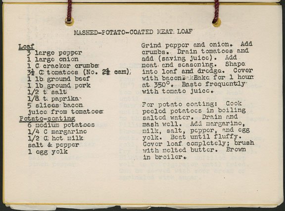 Soak bread in water. Add to meat. Sprinkle dried milk over this. Blend thoroughly. Add rest of ingredients (except flour and fat).