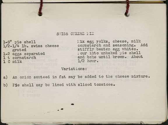 Mix egg yolks, cheese, milk, cornstarch and seasoning. Add stiffly beaten egg whites. Pour into unbaked pie shell and bake until brown. About ½ hour.