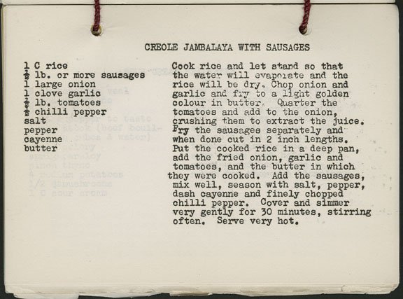 Cook rice and let stand so that the water will evaporate and the rice will be dry. Chop onion and garlic and fry to a light golden colour in butter. Quarter the tomatoes and add to the onion, crushing them to extract the juice. Fry the sausages separately and when done cut in 2 inch lengths. Put the cooked rice in a deep pan, add the fried onion, garlic and tomatoes, and the butter in which they were cooked. Add the sausages, mix well, season with salt, pepper, dash cayenne and finely chopped chilli pepper. Cover and simmer very gently for 30 minutes, stirring often. Serve very hot.