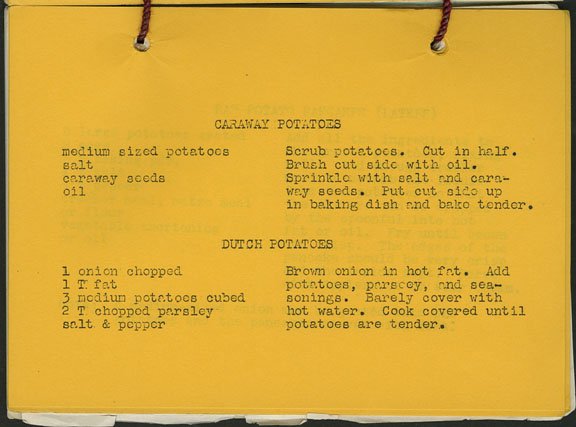 Scrub potatoes. Cut in half. Brush cut side with oil. Sprinkle with salt and caraway seeds. Put cut side up in baking dish and bake tender.