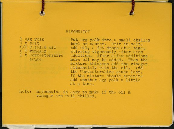note: mayonnaise is easy to make if the oil & vinegar are well chilled.