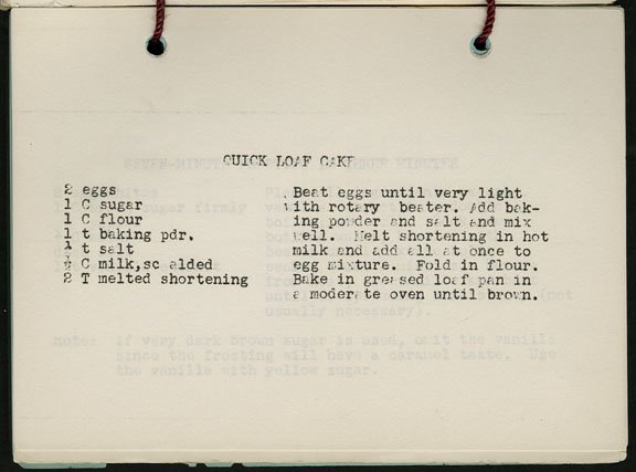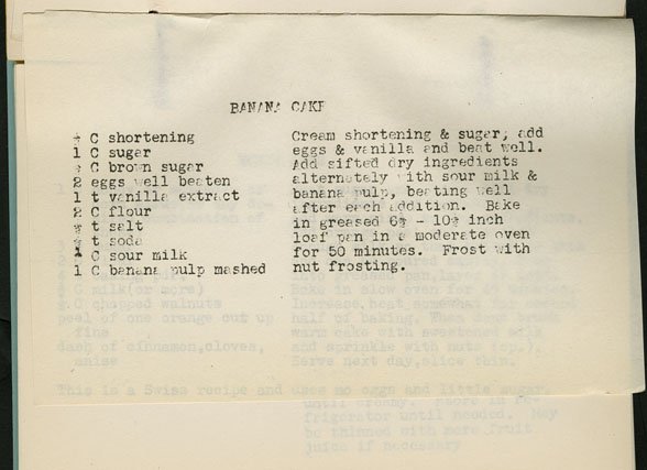 Cream shortening & sugar, add eggs & vanilla and beat well. Add sifted dry ingredients alternately with sour milk & banana pulp, beating well after each addition. Bake in greased 6½-10½ inch loaf pan in a moderate oven for 50 minutes. Frost with nut frosting.