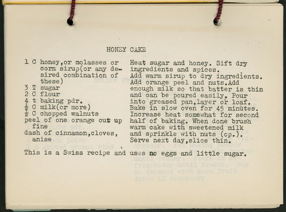 Heat sugar and honey. Sift dry ingredients and spices. Add warm sirup to dry ingredients. Add orange peel and nuts. Add enough milk so that batter is thin and can be poured easily. Pour into greased pan, layer or loaf. Bake in slow oven for 45 minutes. Increase heat somewhat for second half of baking. When done brush warm cake with sweetened milk and sprinkle with nuts (op.). Serve next day, slice thin.