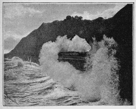 "The wind, having blown a gale the whole day, continued to increase in violence as evening approached, and from 7 till 9 o'clock P.M., accomplished, if not all, the greater part of the devastation to house and woods. The noise of the storm resembled the frantic yells and fiendish laughter of millions of liberated maniacs, broken, at frequent intervals, by what sounded like deafening and rapid volleys of heavy artillery, and, as these died away, louder and louder again rose the appalling screams of the storm, with slight intervals of lull and perfect calm, only to return with tenfold violence, which made[135] the whole house tremble and vibrate. At 7 P.M. two heavy skylights were blown from their position on the roof of the kitchen, and from the chimney of the same building a huge metal plate was hurled into the court below, carrying the masonry through the roof and into the room underneath.