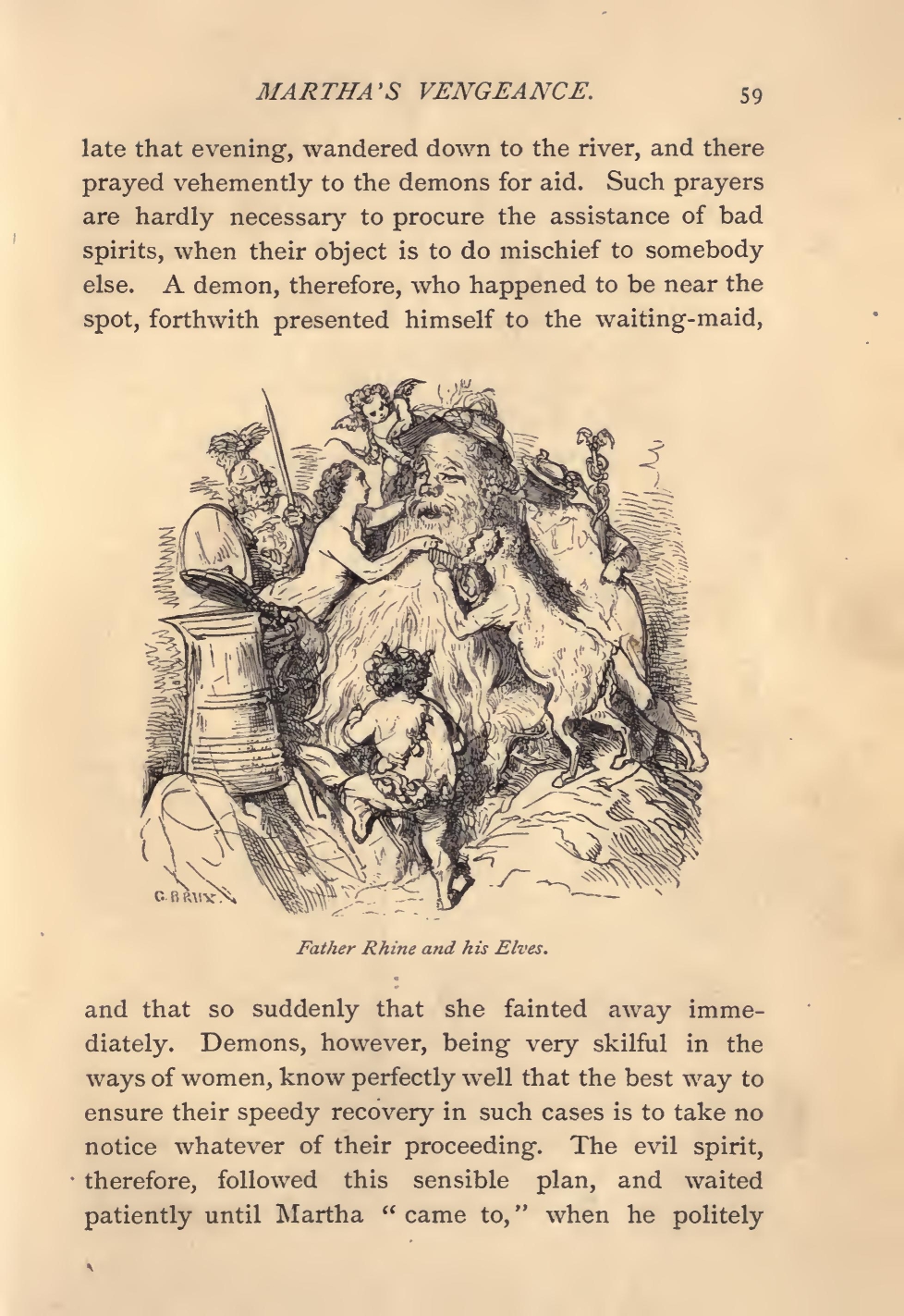 As soon as Father Thames had thus concluded his story, his companion clapped his hands in an approving manner. “That,” he remarked, “is a capital legend, and ends, as a legend should, in a comfortable manner. I have many curious tales of my own river, but none, I think, more curious than the one you have related. However, as it is now my turn, I will do my best, and, with your good leave, will tell you the famous story of 'Martha’s Vengeance.’”