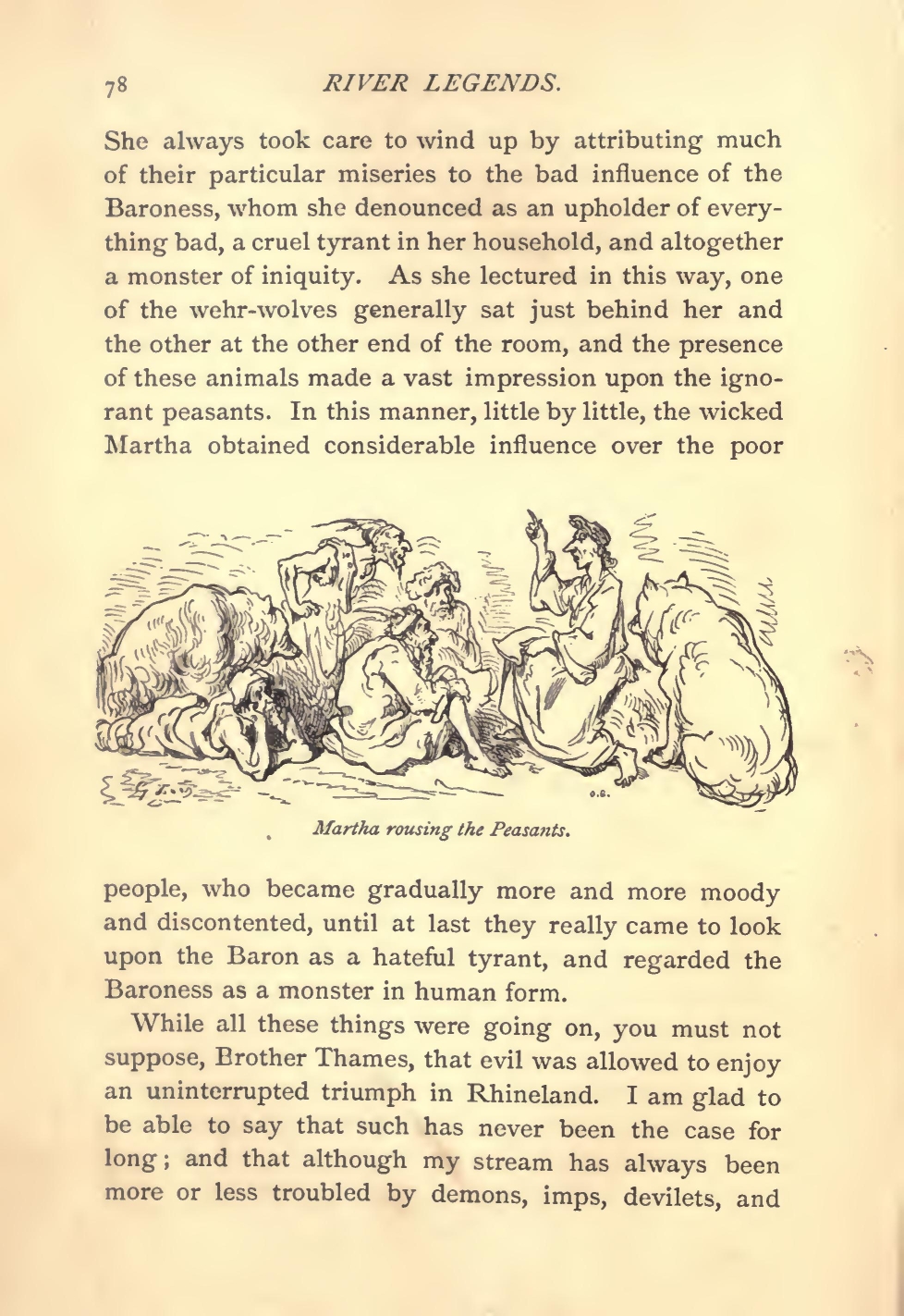 Father Thames and Father Rhine................003 The Messenger.................................005 Father Thames after his Ale...................006 The Boar......................................008 The Boar’s Family.............................010 The Infant Smith..............................013 The Sacrifice of Smith’s Father...............015 Smith in Toad-land............................018 The Snakes....................................022 Bertha the Druidess...........................027 The Road into the Forest......................035 The Last of the Boar..........................046 The Baroness and her back hair................056 Father Rhine and his Elves....................059 The River-Demon Thief.........................064 The Greedy Child..............................067 The Devilet...................................072 Martha rousing the Peasants...................078 Father Rhine and the three Baronesses.........081 The Swan-sisters..............................084 Crazy Timothy.................................092 The Old Harper................................097 She keeps the Pigs............................115 She watches the Battle........................132 Giants Mountain-building......................143 Bramble-buffer Storm-making...................148 He uproots the Tree...........................153 Hans sent aloft...............................163 Hans in the Giant’s Mouth.....................166 The Mouth Fortified...........................167 The Giant weeps...............................170 The Giant’s Release...........................173 The Castle....................................181 Mannikins at Play.............................187 Goody Tickleback’s Steed......................188 Flight of the Witches.........................202 The Sea-serpent...............................225 Father Rhine’s Retreat........................252