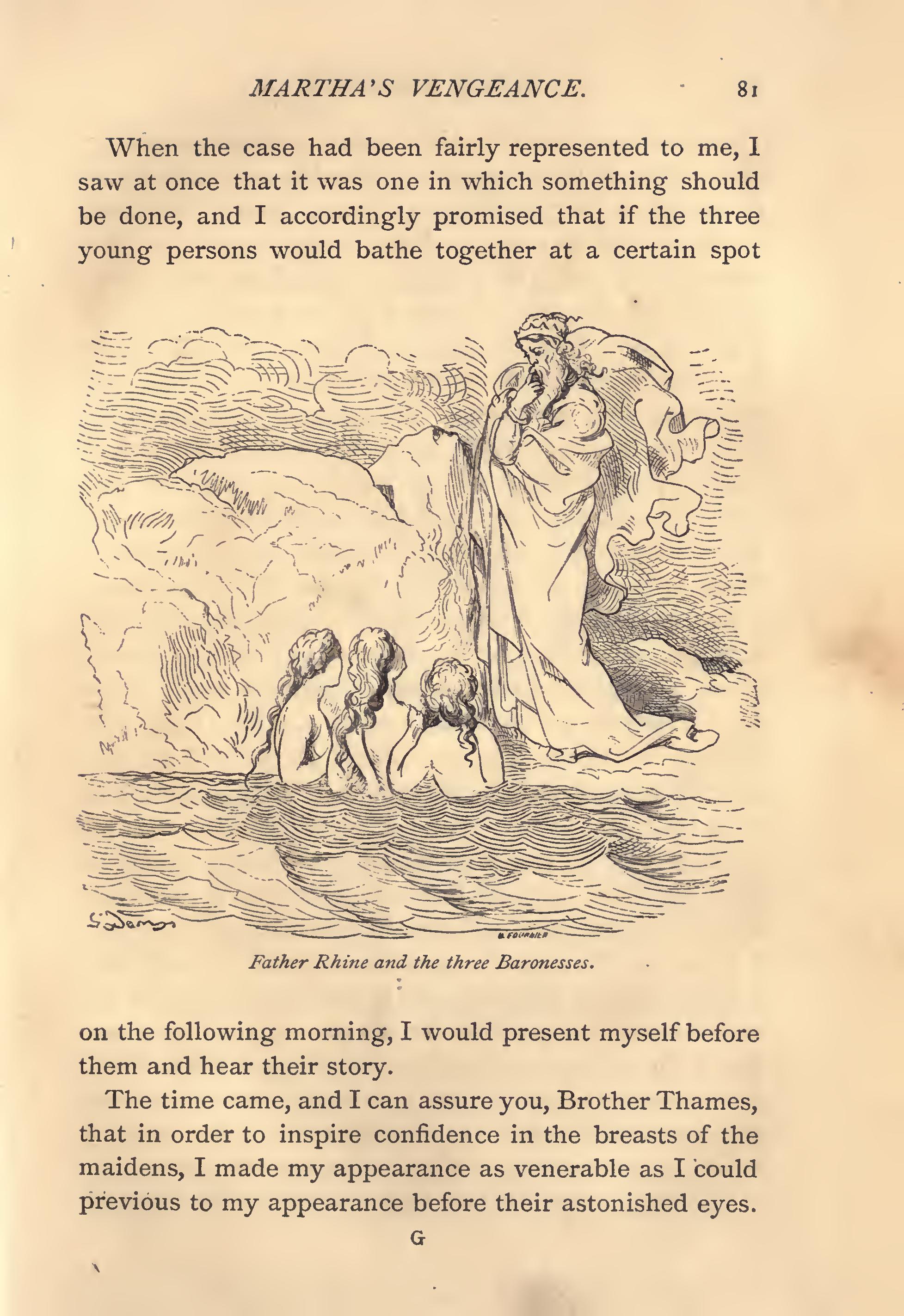 “Agreed!” cried he of the Rhine; “and as thou hast proposed the pastime, Brother Thames, do thou begin.” Thus adjured, Father Thames, having previously filled and emptied his tumbler once more, cleared his throat and commenced the history of—