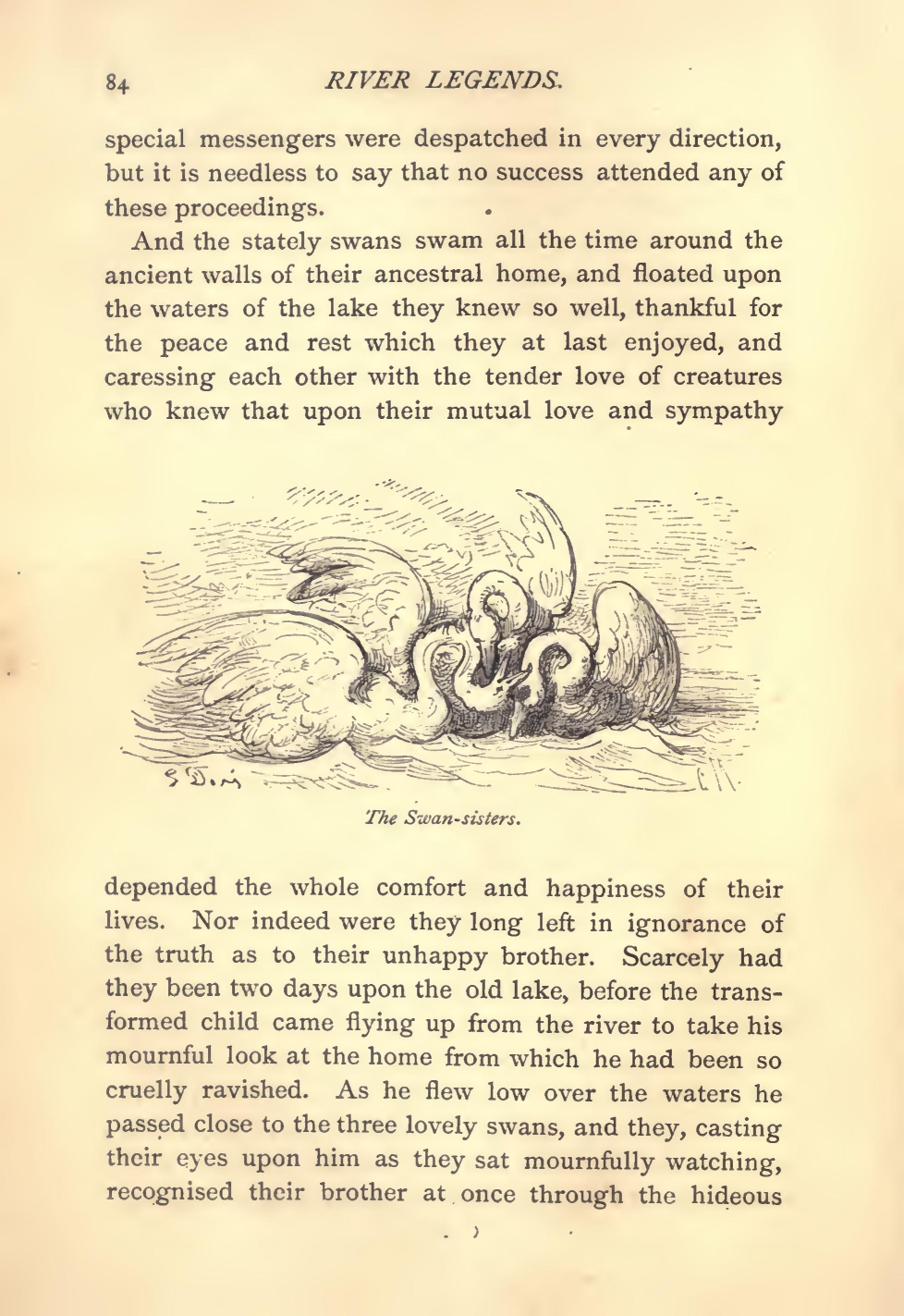 During the progress of these events, Brother Rhine, the state of mind and general feelings of the three witches may be better imagined than described. They wept, they howled, they tore what hair they had, they used language with which I will not sully my lips, and manifested every token of frantic rage and consternation. Charms and incantations they would have tried, but they knew well enough that they had no power whatever over things or beings in my sacred waters. The swans only laughed at their wild fury and strange gesticulations, and the old women remained upon the bank, perfectly helpless. Once more their plans against the owl and his mannikins had utterly failed; and they saw the destruction of the army which they had taken so much pains to raise, without the smallest power to avert the catastrophe which again dashed their fondest hopes to the ground.