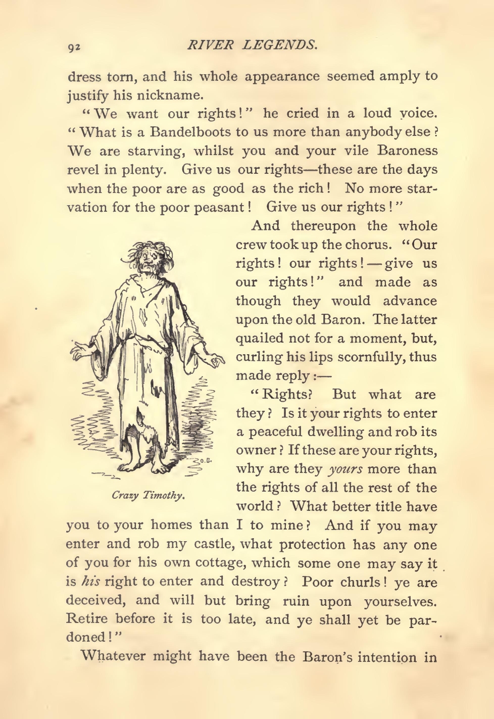 Father Thames smiled grimly. “There never could be two such as Toddlekins in this world,” replied he; “and it is a blessing for me and mine that there has been one. But come, Brother Rhine, there is yet time for another legend. Hast thou none of the old war times, and of the brave German barons who fought so oft and so fiercely?”