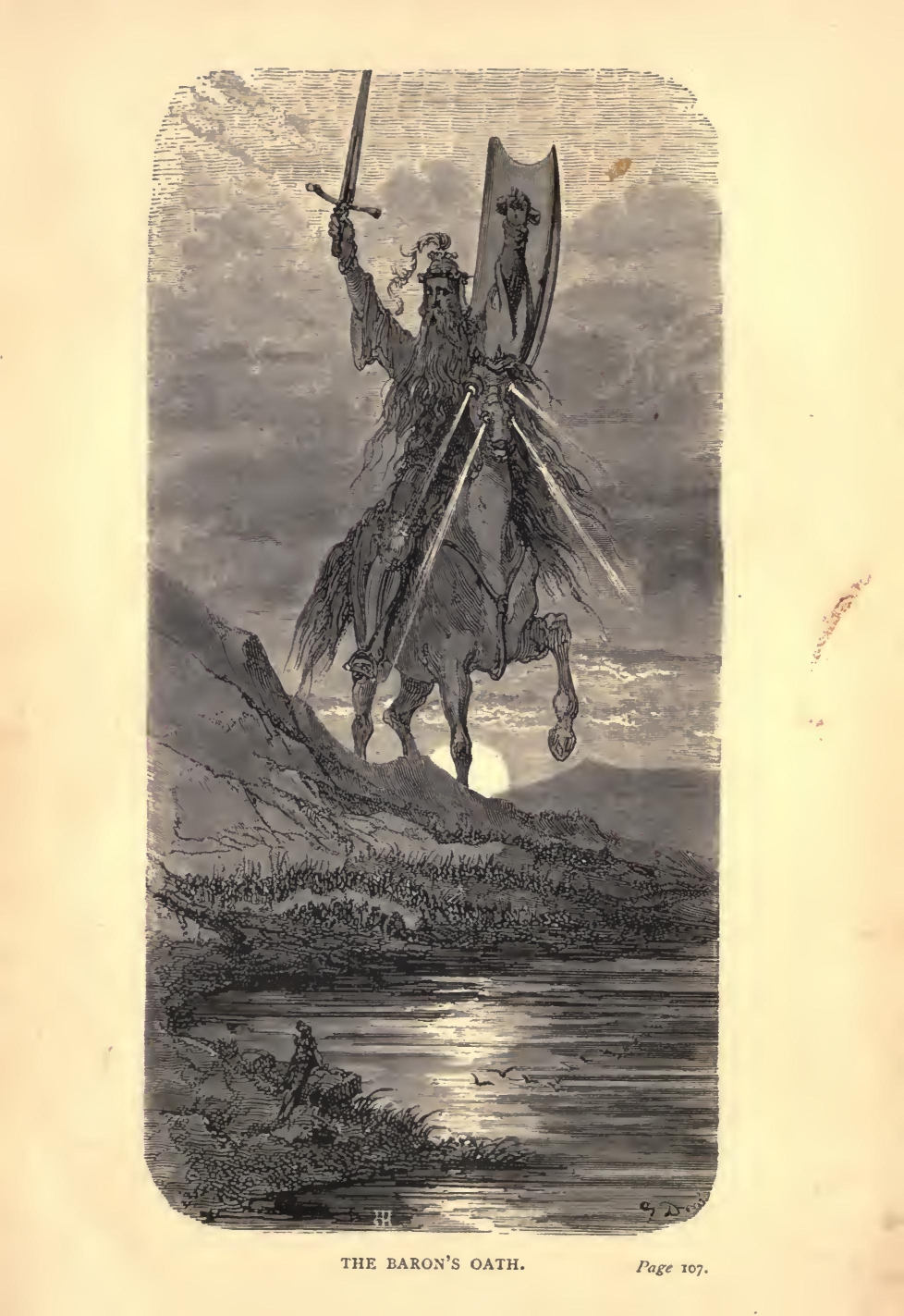 I. Sir Roderick Fowle has returned from the East, Where believers are fighting the Paynim; Though they slaughtered his squire, and they wounded his beast, No Saracen foeman has slain him. II. He has crossed the salt seas, and has come to the land Where no man of battle afraid is, But all have, in war, a keen blade and strong hand, And, in peace, a true heart for the ladies. III. To 230the land of the Gaul is Sir Roderick come (Concluded his Saracen fighting), And with joy and delight is struck perfectly dumb, On the shores of his country alighting— IV. The land where he’d lived as an innocent child (And now he’s a vigorous man, see!), Where Ida, the lovely, had first on him smiled And captured his heart and his fancy. V. Sweet Ida, the daughter of Montmolon’s lord (How blest to possess such a daughter!), Was fairest of fair demoiselles—in a word, All the marrying bachelors sought her. VI. But “attentions” she cared for but little, said she, And, really, seemed scarcely to heed’em; And for marrying! oh! ’twas like “felo de se,” If you could keep your spinsterly freedom. VII. So she turned up her aquiline nose at them all, And refused a round dozen of offers From lords and from knights, who would constantly fall At her feet with their hearts and their coffers. VIII. Till fate in her way threw Sir Roderick Fowle, Before he departed this war on, Then love made the damsel as blind as an owl, And she promised herself to the Baron. IX. The 231war was declared—there was no time to woo, When legions and armies were forming, But, handsome and bold, he knew well what to do, So he carried the fortress by storming. X. And she promised to wed, if he shouldn’t be dead, When the Christians had settled the Paynim. He must go there, he said; but she wanted, instead, By her apron-string still to detain him. XI. But he’d promised to go, and he would, and he must (These men are such obstinate cattle!), So his heart to her keeping the lover did trust, And set off, like a man, to the battle. XII. He went, and he came, and sustained his great name, For when was a Fowle e’er behindhand? And returned to receive the sweet laurels of fame From his Ida’s most willing and kind hand. XIII. When a man’s seeking laurels, to keep him at bay Is a deed most exceedingly cruel, So we’ll hasten our baron along on his way To the casket which held his bright jewel. XIV. Lofty and high were the Montmolon towers, And fortified, too, beyond measure, Lest any bold lord of the neighbouring powers Should harry the Montmolon treasure. XV. Sir 232Roderick gazed on the gloomy old wall, Which the ivy was slowly corroding, When a sight met his eyes which his heart did appal, And fill with a fearful foreboding. XVI. Where the Montmolon banner of old used to wave, And merrily flaunt in the breezes, No banner hung now—all was still as the grave, Or the form that death’s quietude seizes. XVII. The place looked so bleak—‘tis a sad thing to speak, But sad things sometimes must be spoken; And the winds they did shriek through that castle antique, For there wasn’t a window unbroken! XVIII. The mark of a foe did Sir Roderick know Full well—far too well to mistake it; And he groaned deep and low, in sad accents of woe, Ere he turned round his horse to forsake it. XIX. But he stopped; for a groan quite as sad as his own Seemed to come from the shrubberies near him, And an old man he spied, sitting there all alone, Who appeared in no manner to fear him. XX. He approached, and affright half gave way to delight At the chance his lost bride to regain her, When he recognised quite, in this dolorous wight, A Montmolon former retainer. XXI. “Old 233man!” he cried out, “what’s this fuss all about? And has there been any disaster? You seemed crippled, no doubt: is’t rheumatics or gout? And where are your mistress and master?” XXII. With a guttural sigh, like one going to die, The man raised him up on his knees, and Thus made him reply, though the news, by-the-bye, He scarce could get out of his weasand. XXIII. “I’ve a sad tale to crack. Noble sir, you’ve come back To a house sacked from basement to attics; Too long do I lack kitchen chimney and jack For gout—let alone the rheumatics! XXIV. “I speak but with pain, for I’m slaughtered and slain (Just look at my garments all gory), But my breath I would fain a while longer retain Till I’ve told you our terrible story. XXV. “Fair Ida, I fear, you will scarcely find here, Though the room which was hers still you may see, For ‘tis nearly a year since with bow and with spear Hither hastened Sir Marmaduke Tracy. XXVI. “With soldiers in scores, ammunition, and stores, He attacked our unfortunate village; He battered our doors (‘twas the greatest of bores). And allowed all his people to pillage. XXVII. “When 234the storm ‘gan to lower, folks fled to the tower, Young and old the same thing very soon did; We did all in our power, and young Ida’s own bower Was turned into a ward for the wounded. XXVIII. “For months four or five we continued to strive; None ventured on shirking or shamming, Till one-half of our hive were no longer alive— Consumed between firing and famine. XXIX. “When our lord ‘gainst the rout could no longer hold out, He gave in, like a sensible covey; No food was about, save one bottle of stout, Half a loaf, and a pot of anchovy. XXX. “Then at length did we let (though with wondrous regret) Sir Marmaduke through the portcullis; And the treatment we met no one there will forget, Unless he a regular gull is. XXXI. “The Tracy began, and took ev’ry tenth man ‘ Of the Baron of Montmolon’s people, Saying, ‘Fly, if ye can, for ye soon will be dan— Cling from top of the neighbouring steeple. XXXII. “‘Since ye foolishly list, Tracy’s arms to resist, Ye shall see how his mercy shall treat ye; And your wives shall be kissed, if by them ye are missed In your homes, while the carrion eat ye.’ XXXIII.