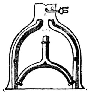 Cugnot's locomotive actually existed though, and was undoubtedly the first. It was operated by means of two bronze cylinders, into which the steam passed through a tube from the boiler—escaping through another tube.
