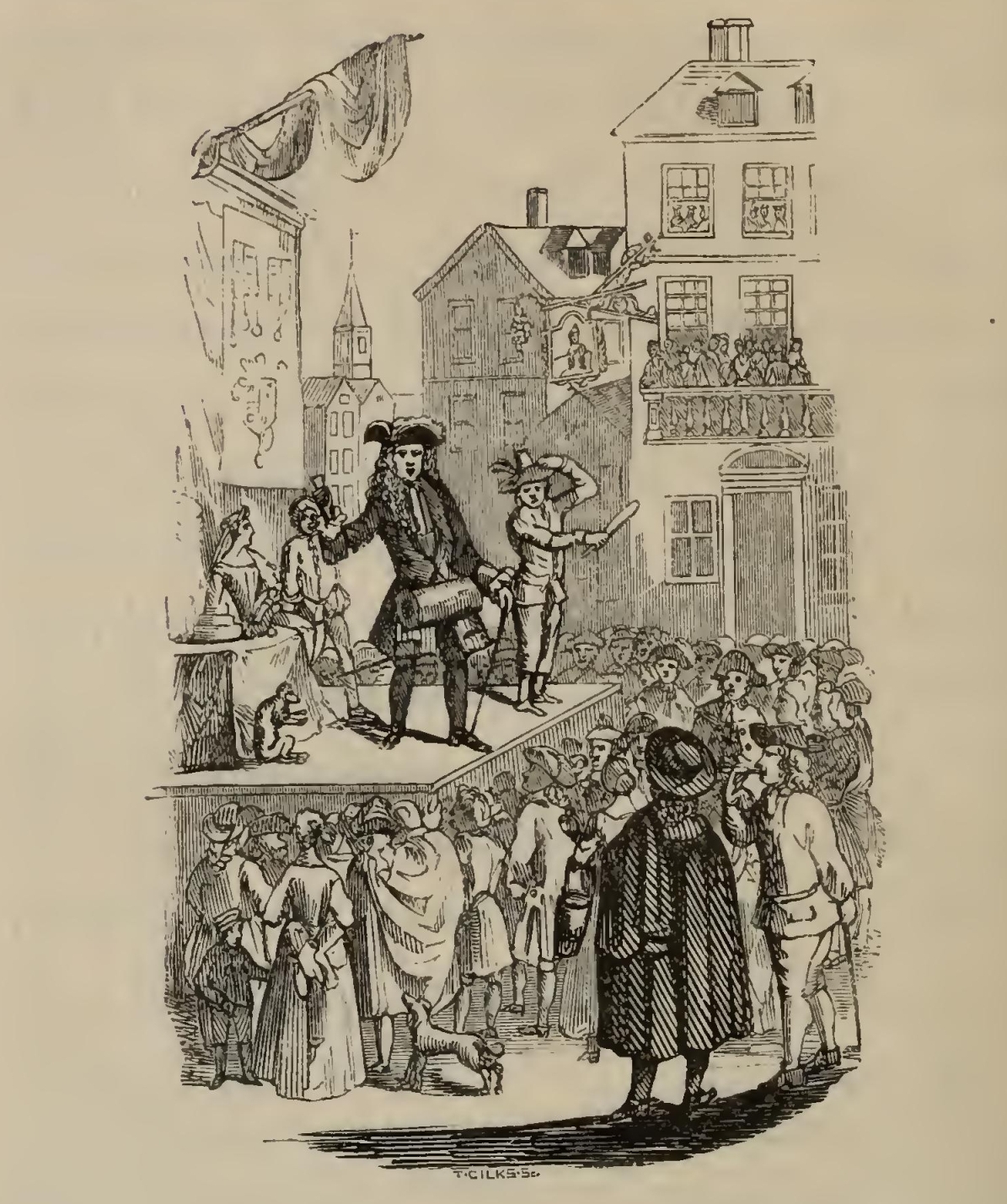 “Merrie England in the Olden Time” having found favour with the Public in “Bentley's Miscellany,” puts forth new attractions in the present volumes. It has received numerous and important corrections and additions; the story has been illustrated by those eminent artists Messrs. Leech and Robert Cruikshank; and fac-similes, faithfully executed by that “cunninge” limner Mr. Thomas Gilks, of rare and unique portraits of celebrated Players, Jesters, Conjurers, and Mountebanks, (preserved only in the cabinets of the curious,) exhibit “lively sculptures” of once popular drolls and wizards that shook the sides and “astonished the nerves” of our jovial-hearted and wondering ancestors.