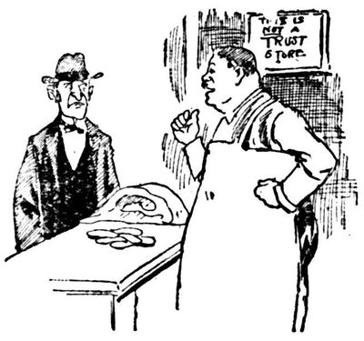"You won't find any beef trust at this shop, I'm telling you right now—my terms are strictly cash," was what the cruel purveyor of loins and steaks tossed at him.