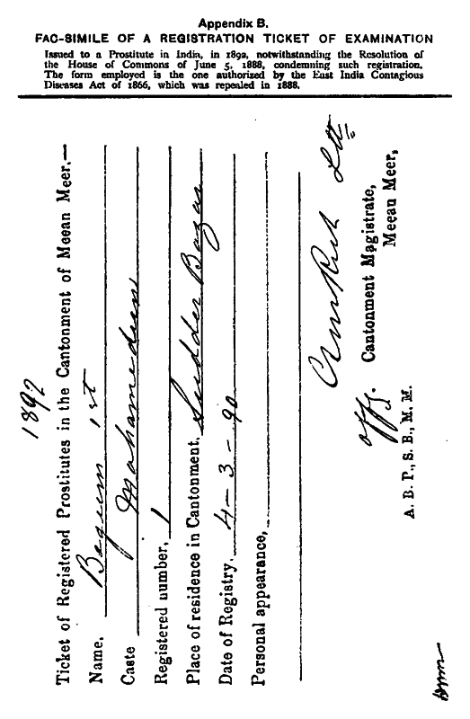 Issued to a Prostitute in India, in 1892, notwithstanding the Resolution of