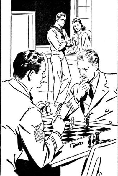 He caught her hand and started across the green to the end of the long table where an efficient-looking woman, in a blue uniform with spotless white collar and cuffs, was pouring coffee. Within a few feet of her the sailor stopped suddenly.