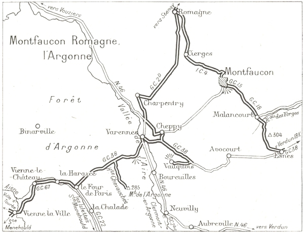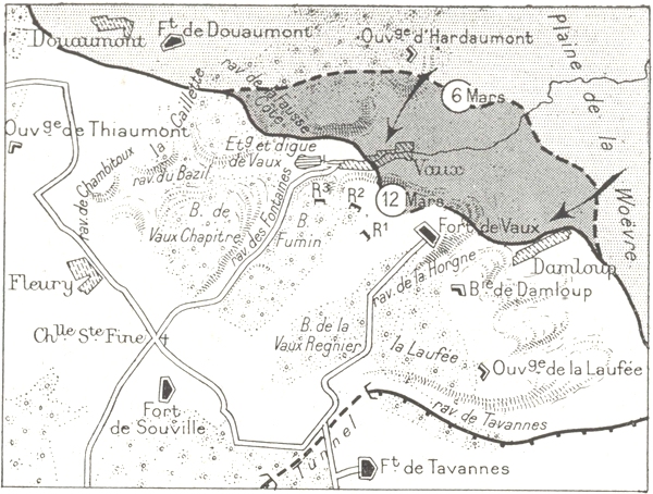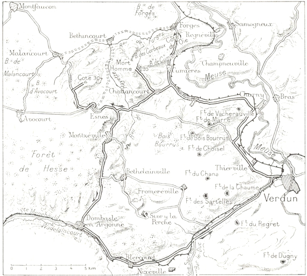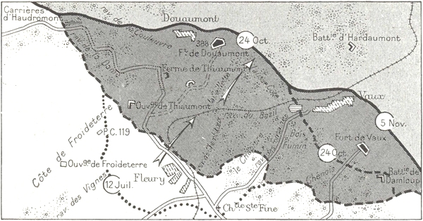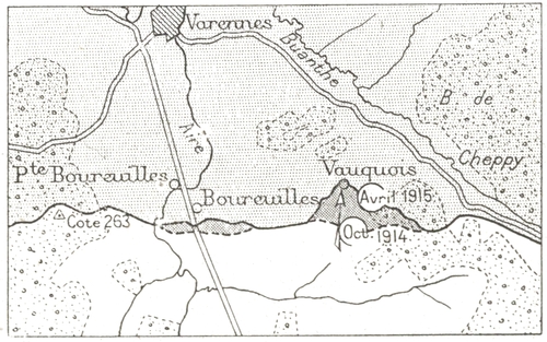 In October, advancing to the sap, the Germans of von Mudra's army (p. 14) corps took Bagatelle and Saint-Hubert. At the end of November the Four-de-Paris—Varennes road was abandoned by the French.
